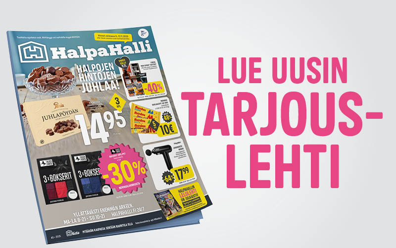 Tarjoukset voimassa ti 11.11.2025 asti, ellei toisin mainita. Osa verkkokaupan tuotteista toimitetaan suoraan tavarantoimittajan varastosta. Saat lisätietoa toimitusvaihtoehdoista tilauksen yhteydessä.