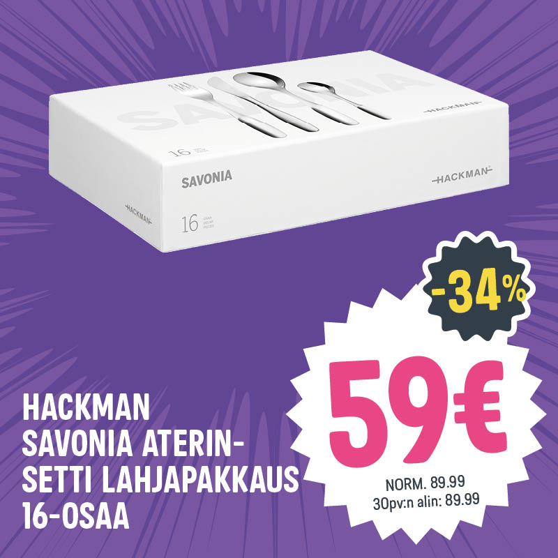Tarjoukset voimassa ti 10.2. asti, ellei toisin mainita tai niin kauan kuin tavaraa riittää tarjousaikana. Riittävyys voi vaihdella myymälöittäin. Osa verkkokaupan tuotteista toimitetaan suoraan tavarantoimittajan varastosta. Saat lisätietoa toimitusvaihtoehdoista tilauksen yhteydessä.